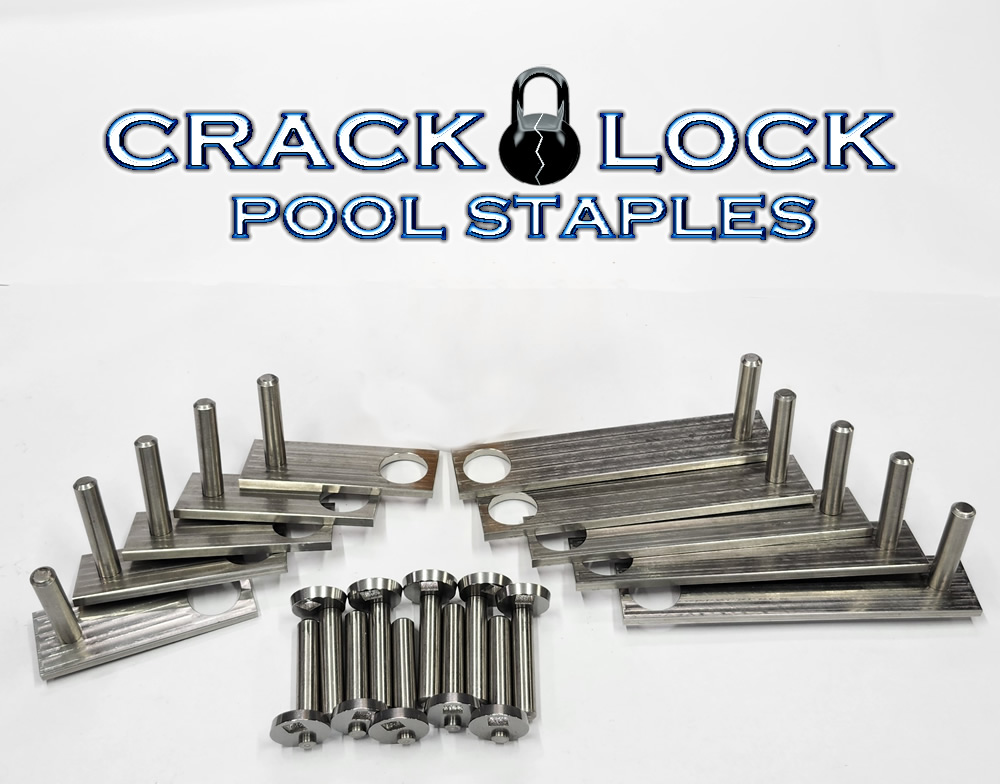 The CAM LOCK design is superior in pulling the crack together. The "slip proof" bevel in the cam does not allow the cam to pull through the bracket like other staples do. The stainless steel material is rust proof adding piece of mind against rust spots bleeding through the pool finish in the future. Our epoxy is the best quality epoxy available that is sure to be consistent from batch to batch. This quick set epoxy comes with 2 dispenser nozzles. When placing the staples; alternate between the 3" and 6" lengths to reduce the stress in any particular area.